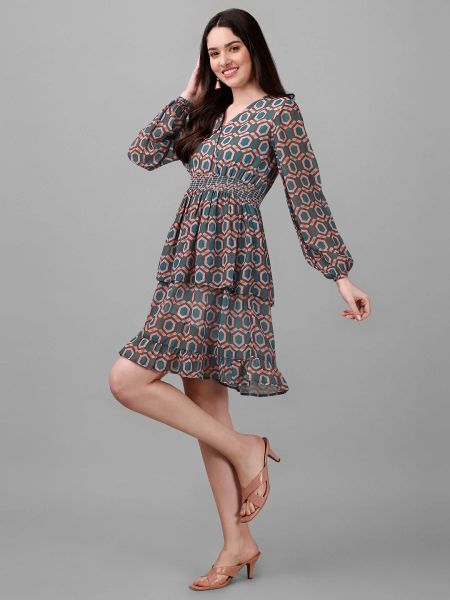 DRESSES FOR WOMEN WESTERN WEAR GEOMETRICAL GREEN DRESS